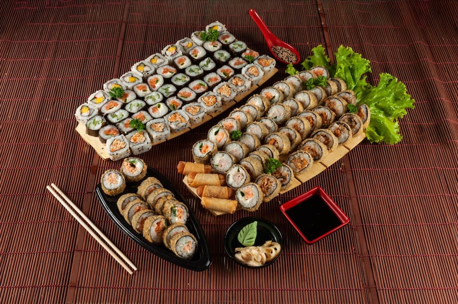 4 sushis salmão4 sashimis salmão 5 joy joy Philadelphia com arroz12 roll Philadelphia 12 hot skin12 hot Philadelphia